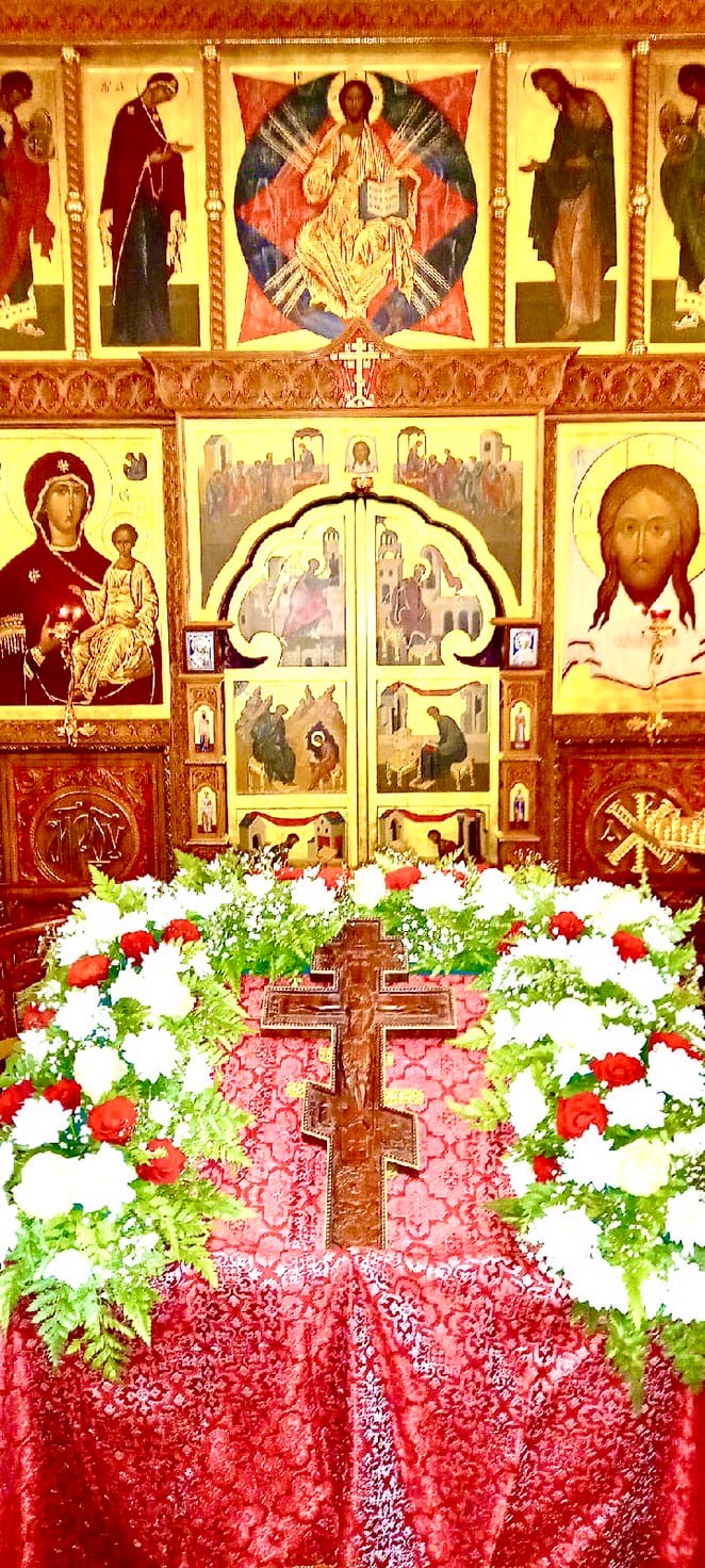 Накануне на Всенощном бдении на середину храма был торжественно вынесен Святой Крест, а в день Праздника совершались Божественная Литургия и поклонение Кресту.